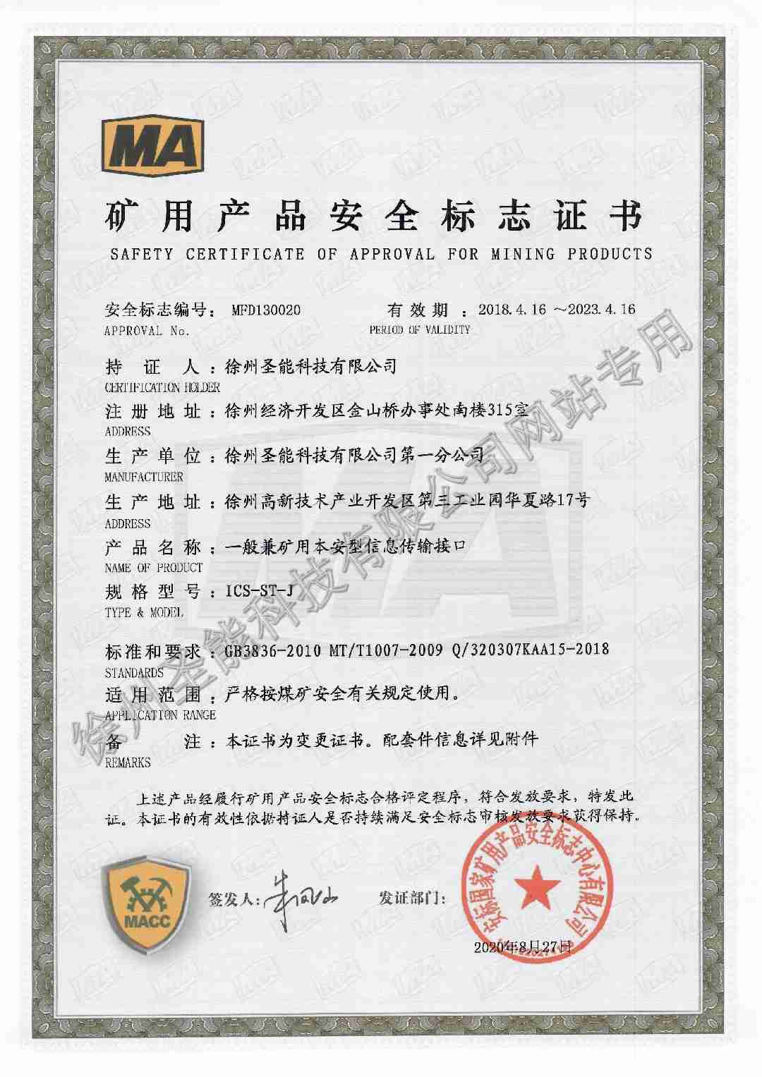 ICS-ST-J一般兼矿用本安型信息传输接口防爆证