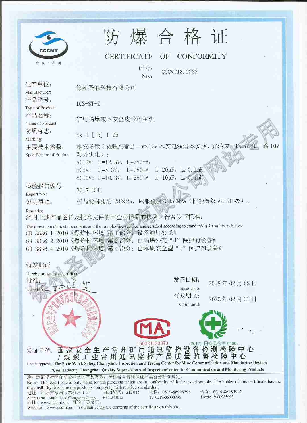 ICS-ST-Z矿用隔爆兼本安型皮带秤主机防爆证