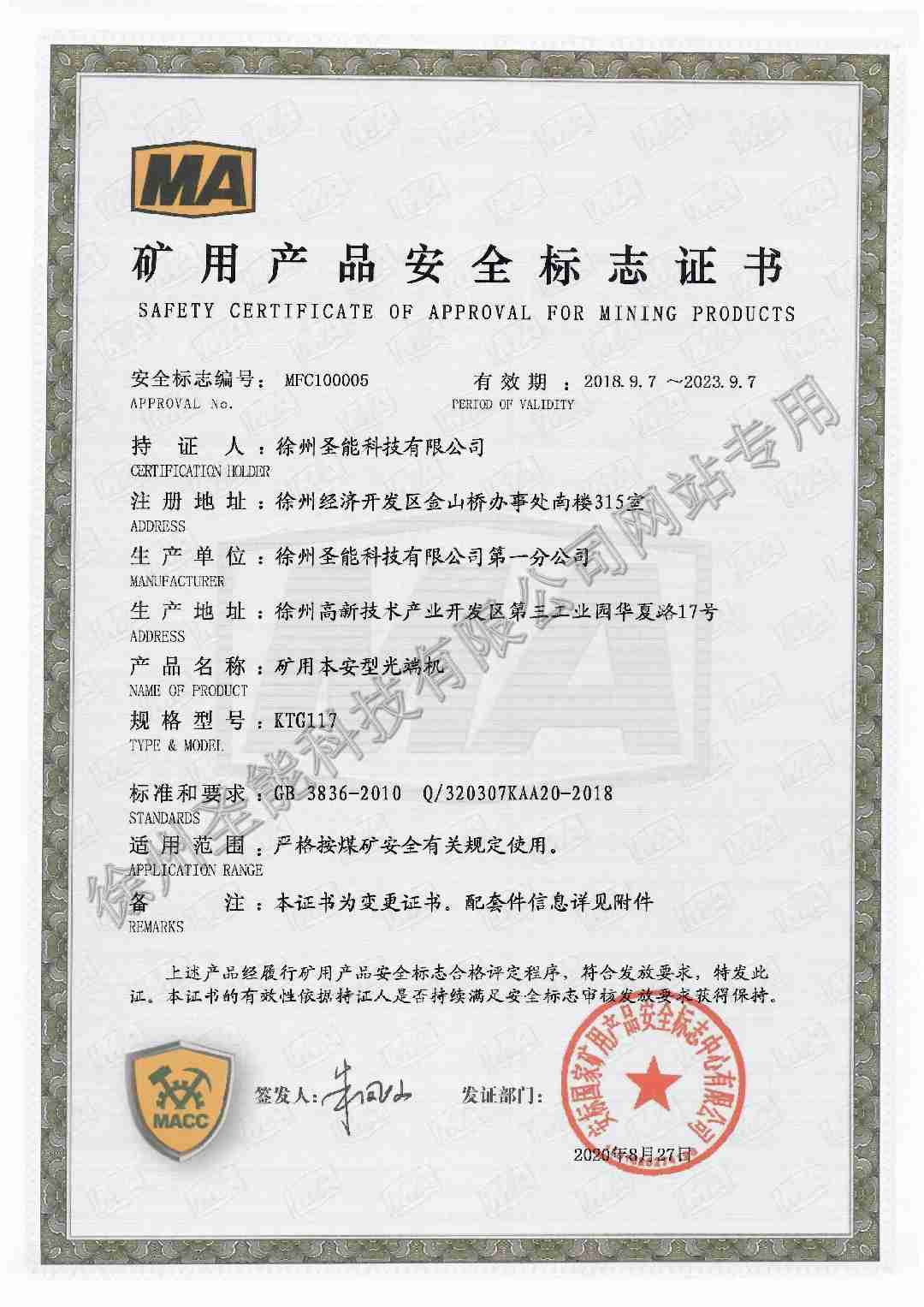 KTG117矿用本安型光端机煤安证