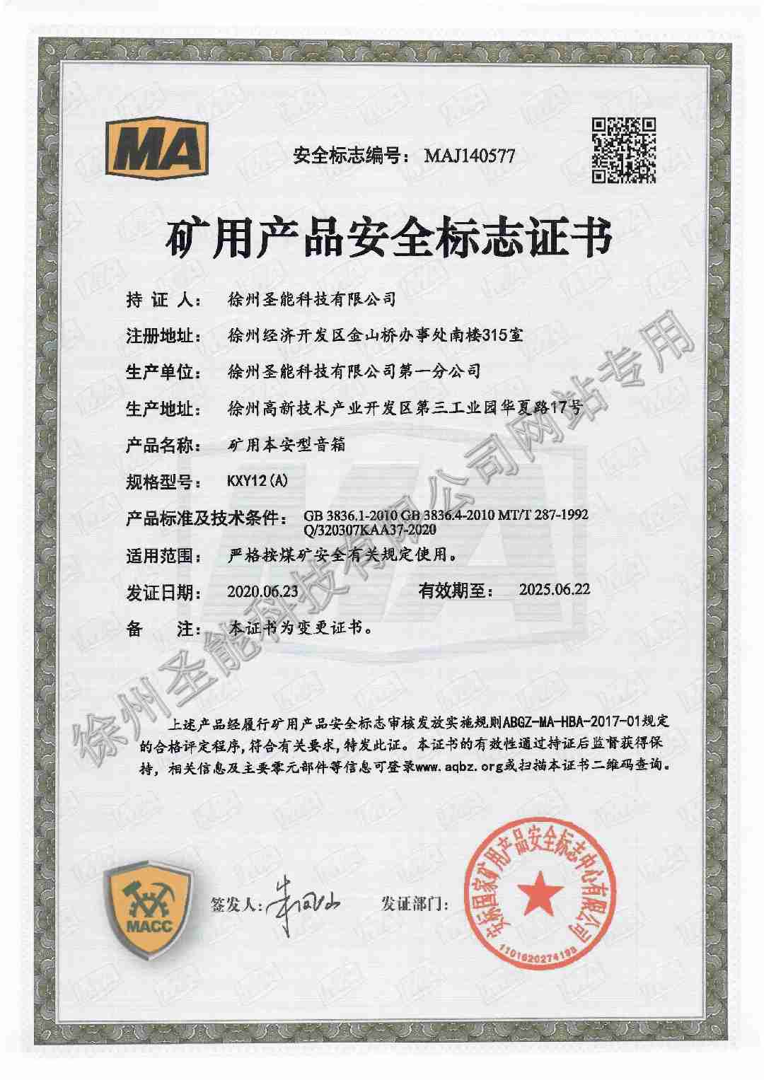 KXY12(A)矿用本安型音箱防爆证