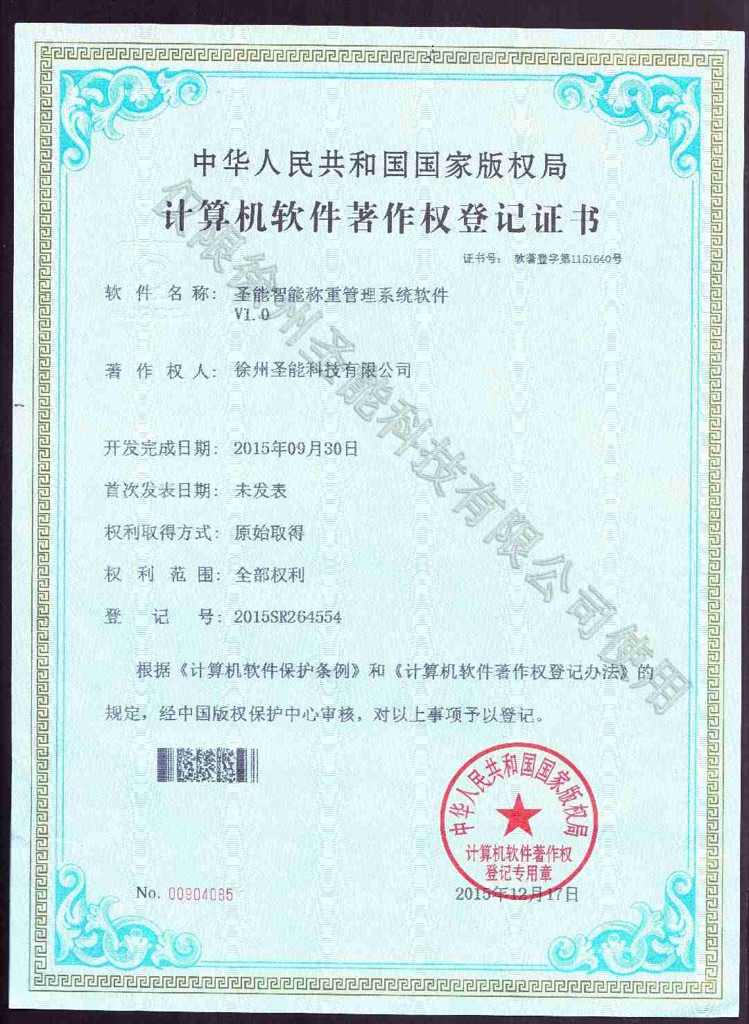 智能称重管理系统软件软件著作权