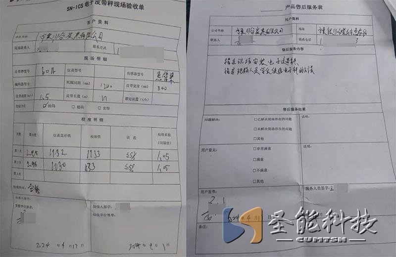 售后服务工程师抵达现场后立即清点物料,确认安装位置,协调现场生产及辅助人员,制定合理的安装计划。安装第一天完成皮带秤机械部分安装,秤架安装、仪表固定、传感器的安装和连接等,完成布线。安装工作完成后进行通电,现场要求线路走管,第二天进行调试。经过多次调试,ICS-30A皮带秤的误差稳定在合格范围内,校准系数稳定在1.05,零点稳定在2.45~2.46。