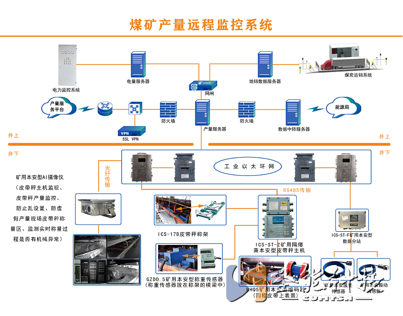 1.精准感知层: 基于高可靠性、防爆设计的矿用电子皮带秤。针对煤矿井下潮湿、粉尘、振动、电磁干扰等严苛工况,系统强化传感器的环境适应性、长期稳定性及抗干扰能力,保障原始计量数据的真实可靠。