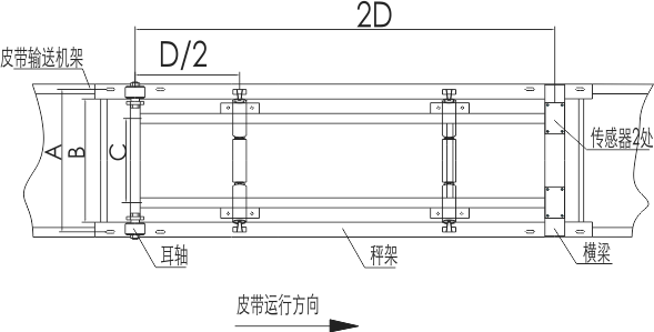 ICS-17B型称重桥架在单杠杆上装有2组托辊,采用两只拉式传感器中间支承,外侧支承采用无磨擦耳轴支点。有效克服偏载对精度的影响,这种封闭装置可以防震、防潮、防腐及防止物料堆积,因而在恶劣的环境中不发生使用刀口装置和轴承装置带来的问题。