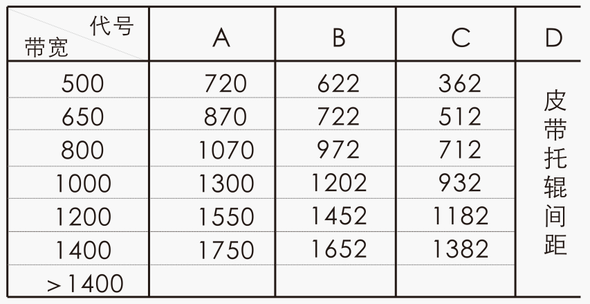 一般用于较长的输送皮带上,D一般为1200mm,安装的输送机倾角应≤17°;