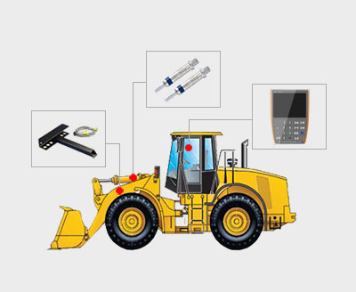 装载机在翻斗过程中,压力传感器将信息传输给仪表CPU,进行数据转换处理,当机车铲货后,小臂立即收回于始点位置,大臂举起经过高精度位置传感器时,装载机称重系统即刻显示货物重量,并且屏幕显示出货物的总累计重量和累计工作次数。
