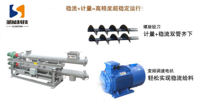 独特的稳流结构,物料输送均匀不结拱,给料计量螺旋上下两层进行同步调速。