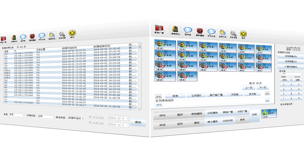 井上设备主要由广播调度台、广播服务器、交换机、IP电话、语音网关和本地程控交换机组成;其中寻呼器(可选)和广播对讲中端(可选)。